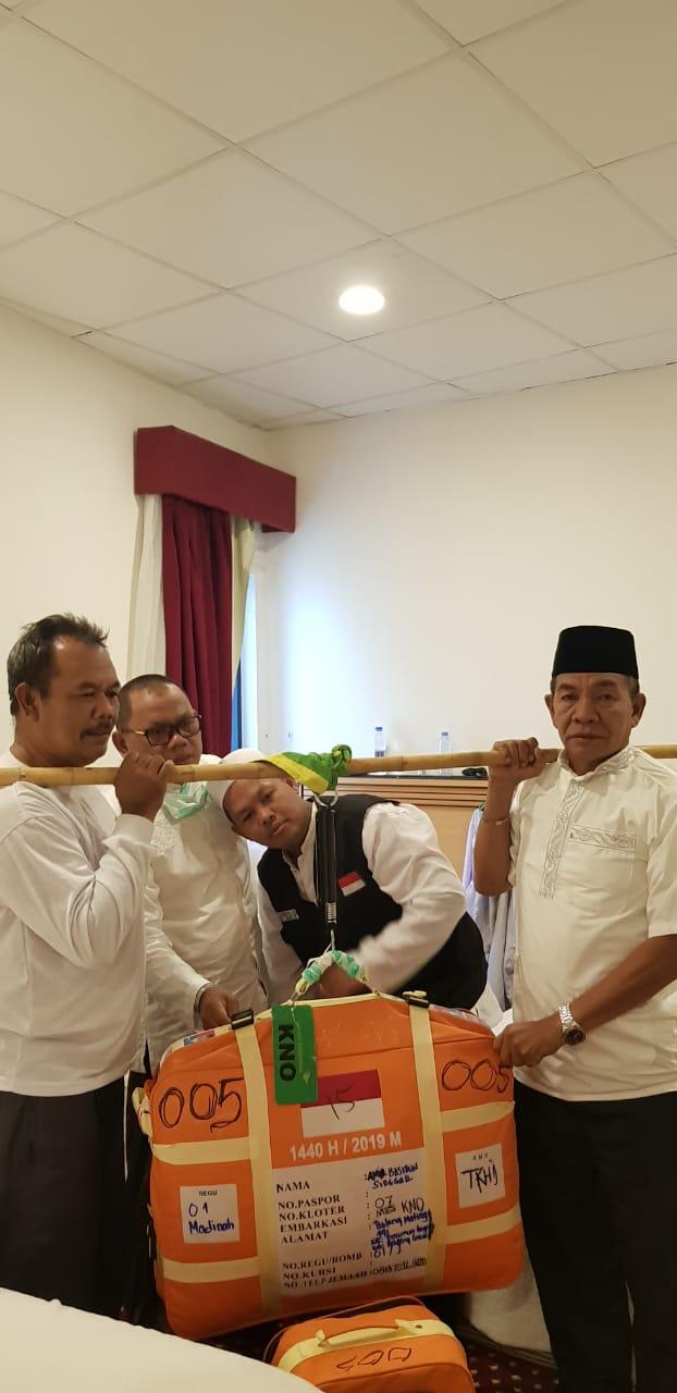 Setelah dicatat berat bagasi lantas diberi tahukan kepada pemilik bahwa batas berat per koper warna oranye 32 kg. Dengan demikian diharapkan jemaah terhindar dari "over weight" bagasi yang beresiko dibongkar maskapai penerbangan dan kelebihan barang akan di tinggal di embarkasi King Abdul Azis Jeddah.